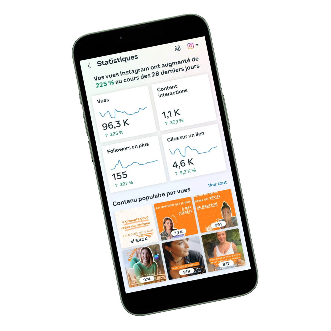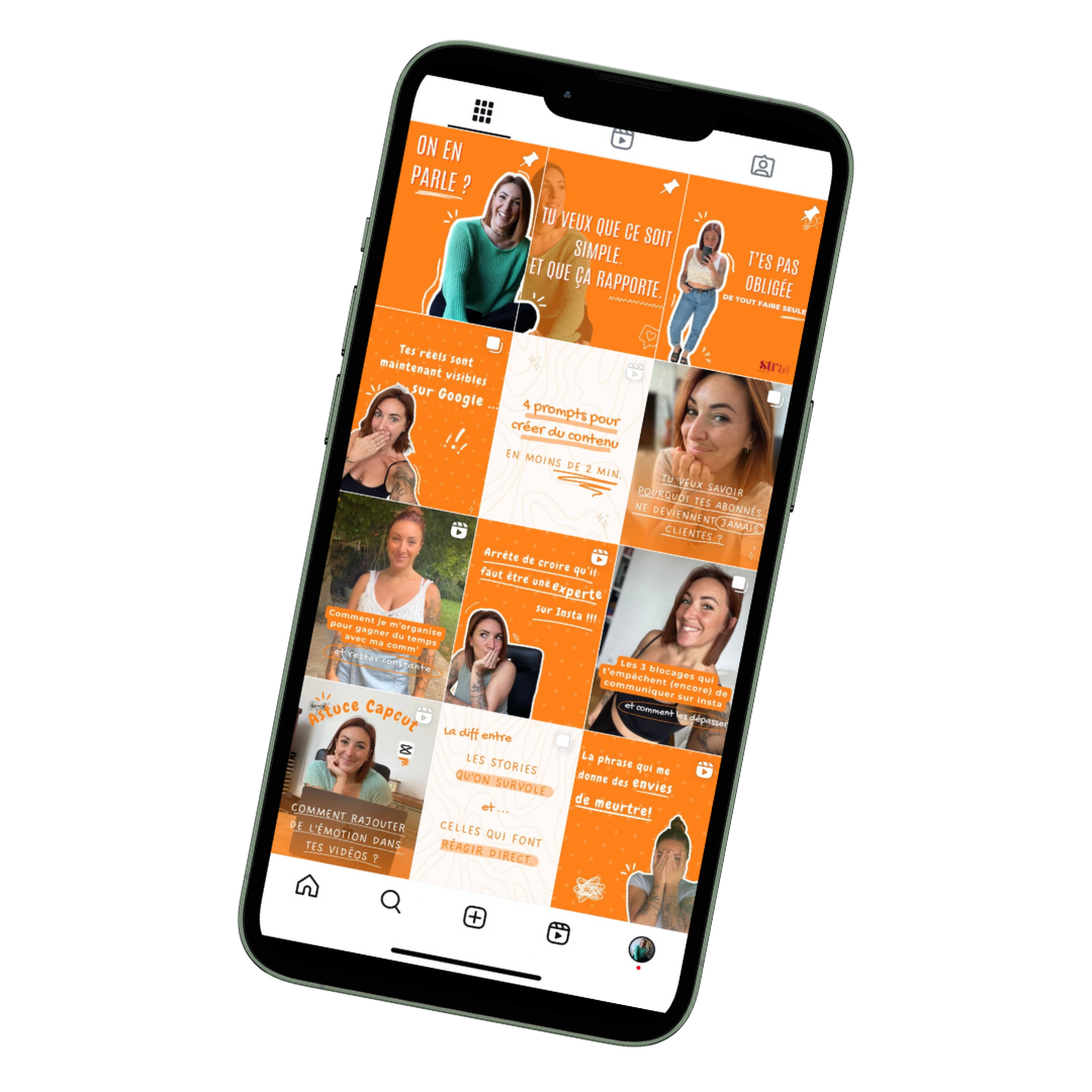 ✅ Mois 2 : La mise en action. On organise ton calendrier, on crée tes premiers contenus ensemble. Tu prends confiance, tu postes enfin sans y passer tes soirées, et tu gagnes du temps.